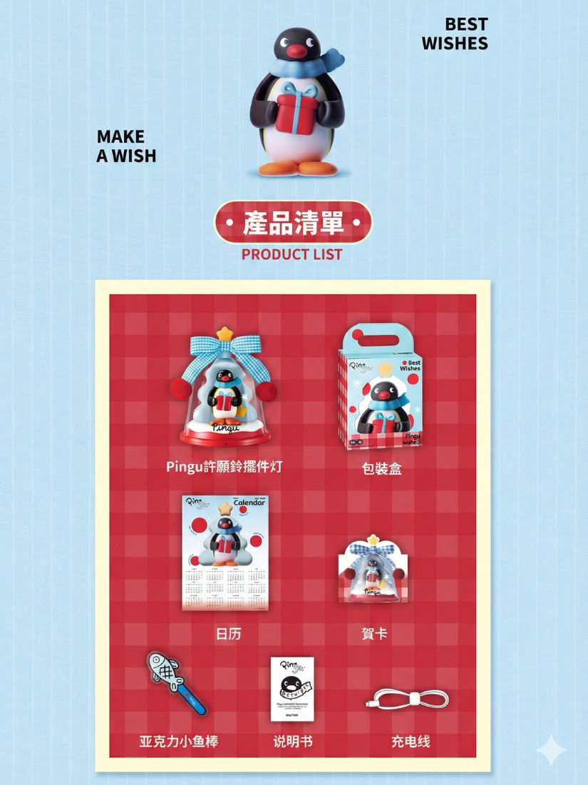 新品預購|MarTUBE x Pingu 官方聯名 許願鈴小夜燈 豪華禮盒組