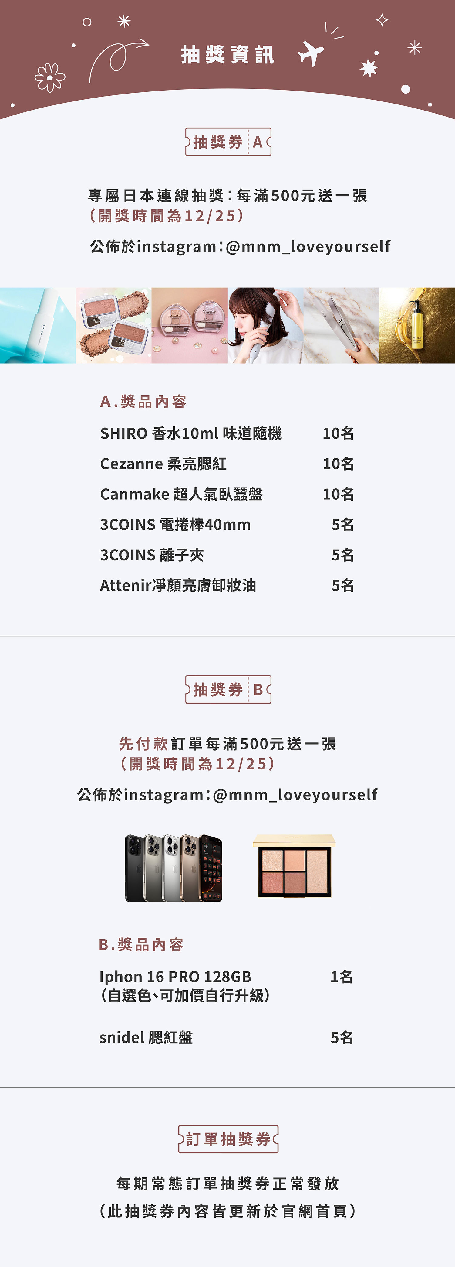 全店,訂單每500元贈送一張抽獎券(依照實付金額給予唷)
