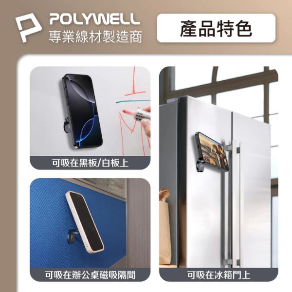 【雙面磁吸】使用iPhone MagSafe磁吸功能,喀噠一聲即可安裝和拆卸, 另一面可磁吸在任何磁性表面,如冰箱、白板、鐵架上