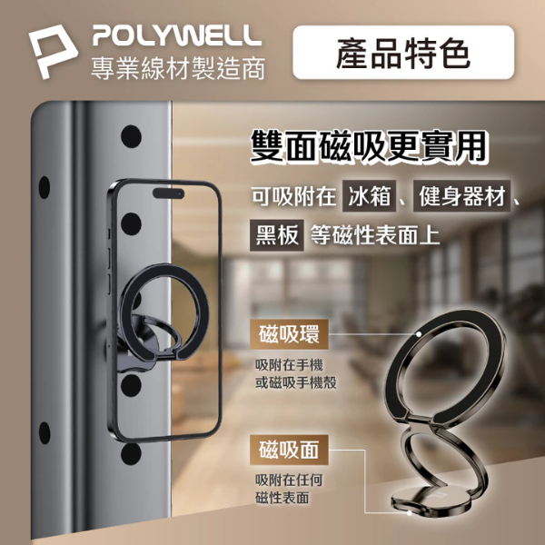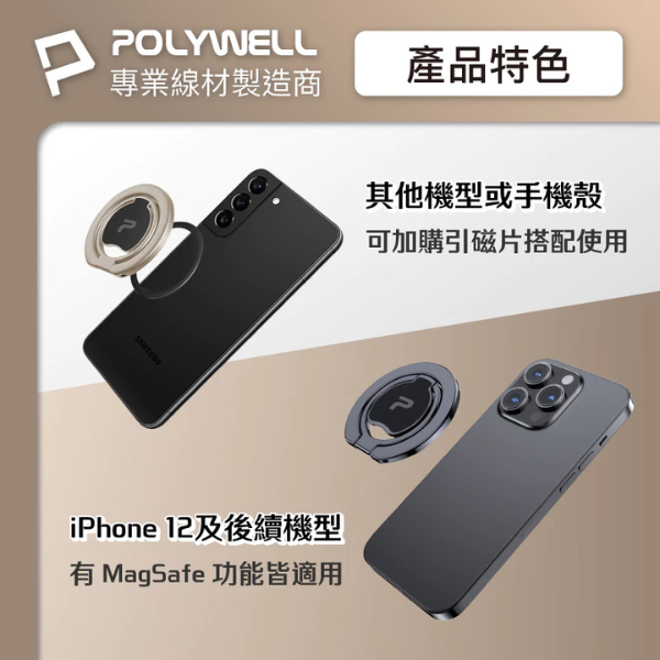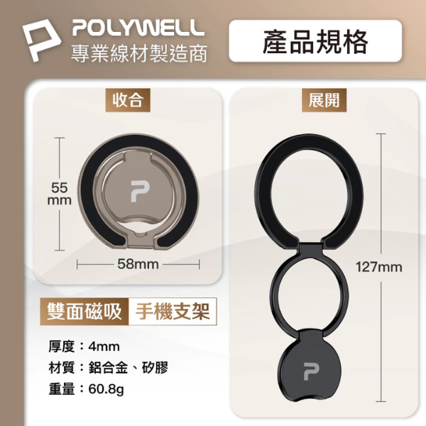 【輕量小巧】磁吸支架厚度僅2mm,磁吸在手機後方不突兀、不佔空間